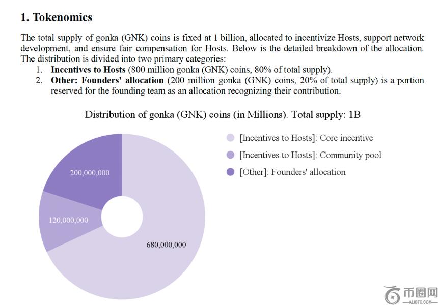 - **总量:10 亿枚 GNK,其中: