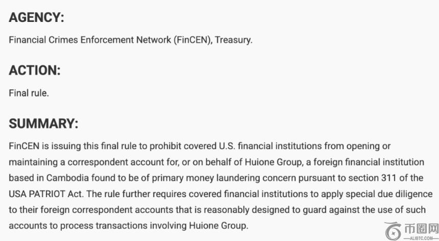 随着该规则的**生效,受监管的金融机构被禁止为汇旺集团开设或维持代理账户,并被要求采取合理措施,避免处理涉及汇旺集团的外国银行机构在美国的代理账户交易,从而防止汇旺集团间接进入美国金融系统。