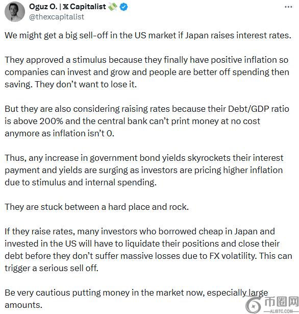 简而言之,曾经从日本流入美国股市或加密货币市场的资金可能会开始反向流动。随着杠杆成本上升,那些在日本以低成本借贷的投资者可能不得不平仓。
