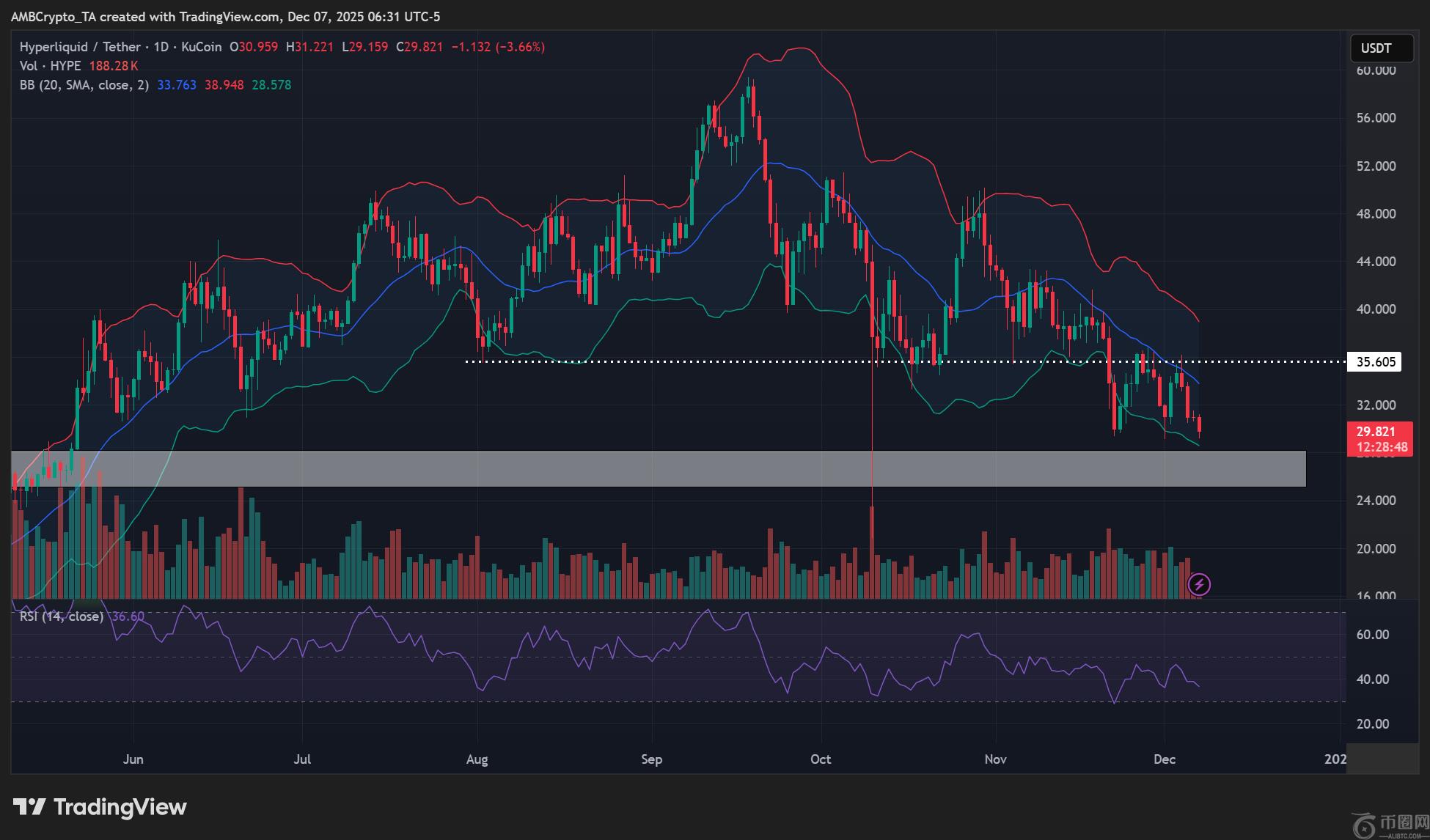 Hypeliquid 团队未来抛售的传闻笼罩着 HYPE 的价格走势。在 11 月 29 日**解锁后,项目团队获得了 174.5 万枚 HYPE,大多数人预计这些**很快就会流入市场。