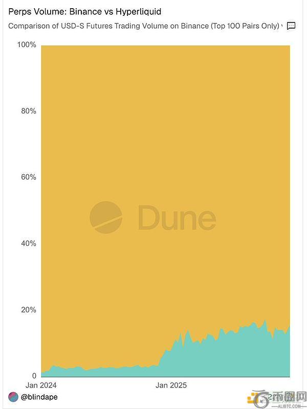 PerpDex 的崛起正威胁着**化交易所(CEX)的霸权。以 Hyperliquid 为例,其交易量已达到的10%且持续增长。交易者选择它们的原因包括: