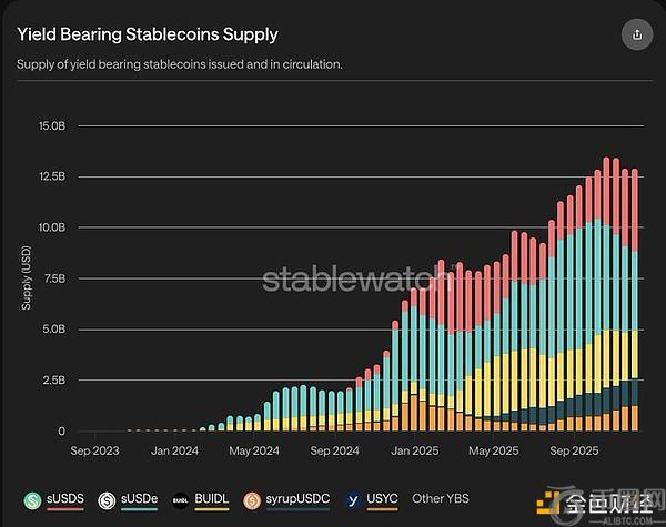 YBS 的总供应量今年翻了一番,达到125亿美元,由 BlackRock BUIDL、Ethena 和 sUSDs 等推动。虽然近期的一些安全事件(如 Stream Finance)打击了市场情绪,但稳定币仍是加密行业中为数不多的可持续增长业务。