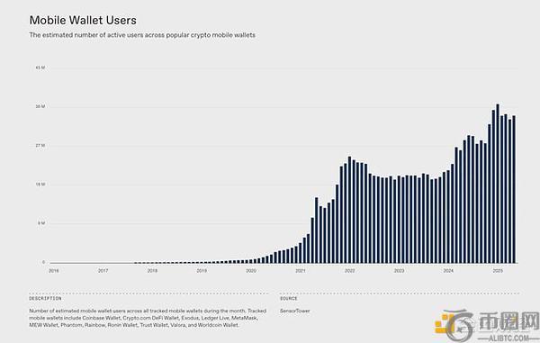 根据 a16z Crypto 的研究,加密移动钱包用户同比增长了 23%,且这一趋势没有放缓的迹象。