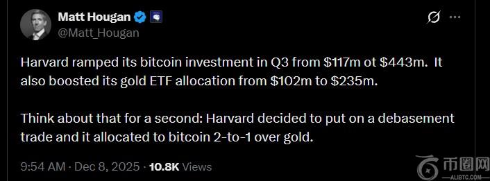文章标题:哈佛大学将比特币投资增加两倍,并押注2025年第三季度比特币价格将比黄金价格高出2倍。