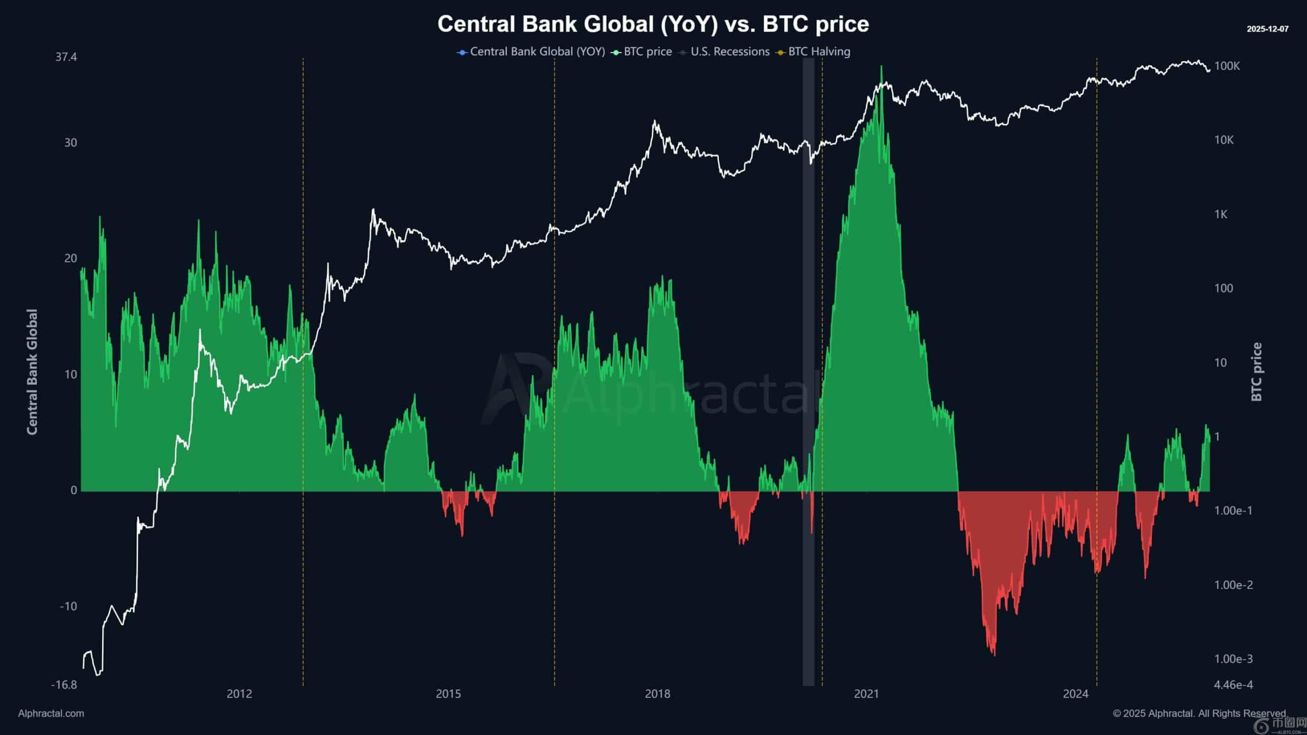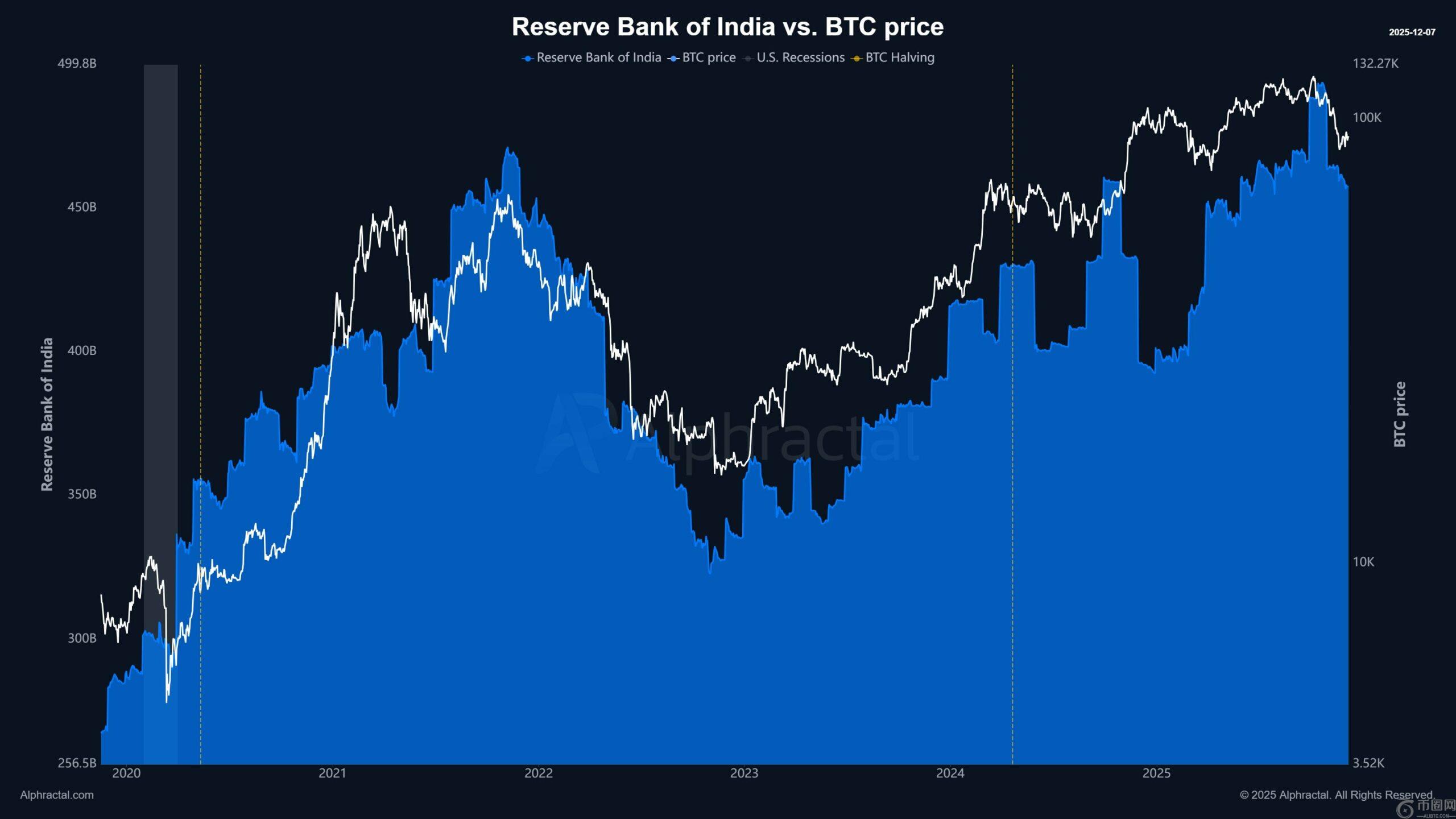 在主要央行中,印度储备银行与比特币价格的相关性**。比特币价格的变化反映的是全球流动性的变化,而不仅仅是美联储的政策。