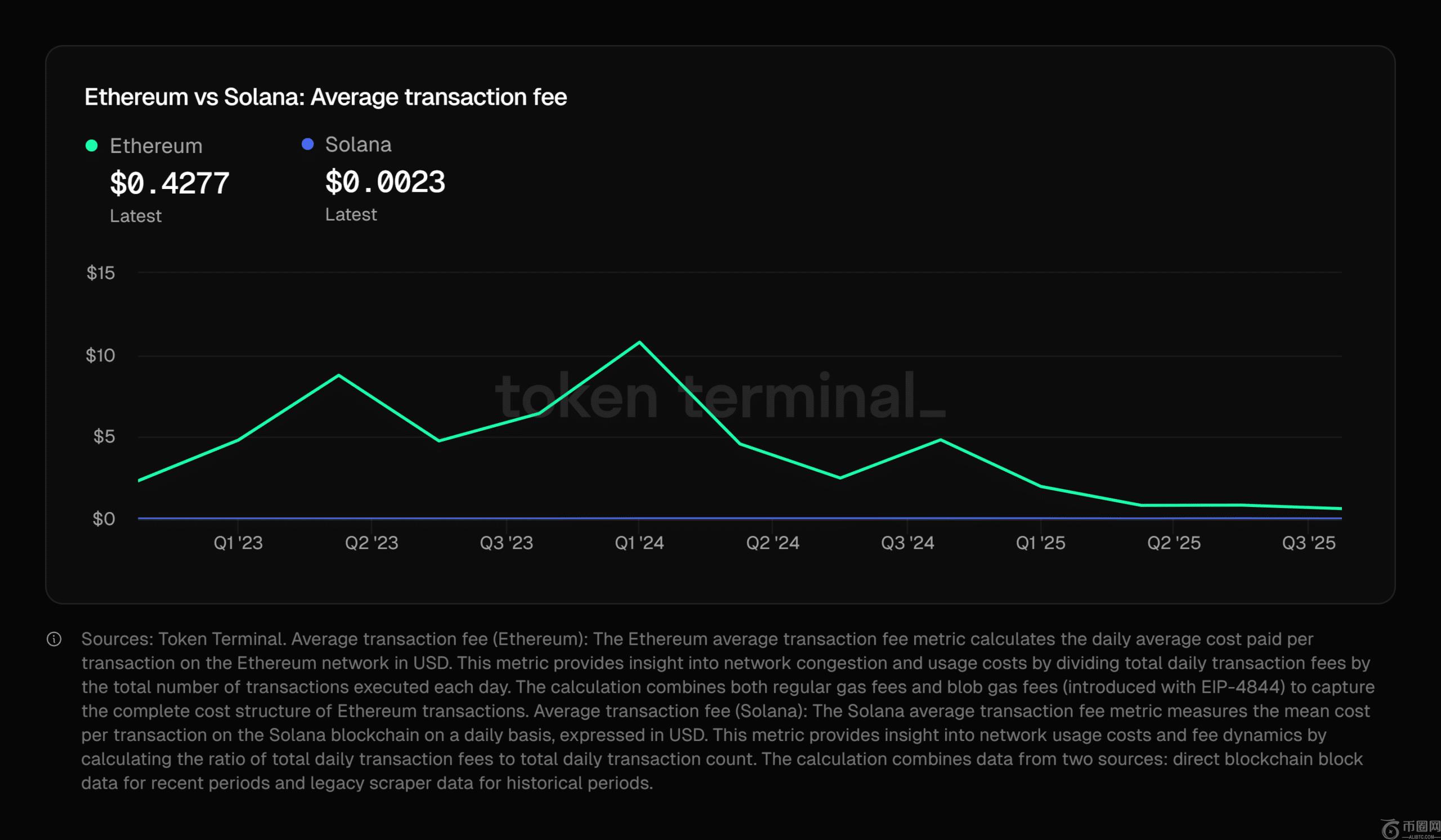你也可以把它看作是平均值交易费整个区块链上都是如此。对于以太坊来说,其成本一直远高于 Solana。但最近的扩容已经……**了成本并有助于缩小差距。