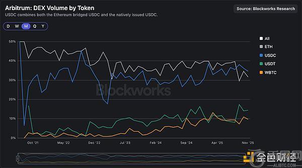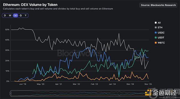 以太坊(ETH)作为交易媒介的主导地位有所下降,而USDC和USDT在交易量图表以及Uniswap等**资金池中的受欢迎程度正在上升。