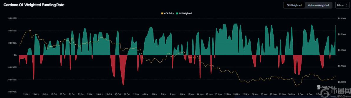 除了持有者不断增持之外,Coinglass 的 OI 加权资金率数据显示,押注 ADA 价格将进一步下跌的交易者数量低于预期价格上涨的交易者数量。