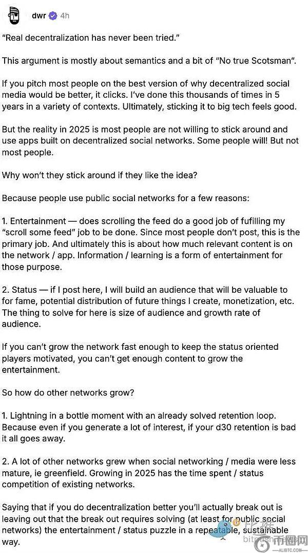 DeFi KOL Ignas在X(@DeFiIgnas)直言,Farcaster“只是承认了大家已经感觉到很久的事实”: