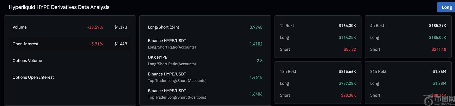 截至周二发稿时,Hyperliquid (HYPE) 下跌 3%,连续第六个交易日走低。衍生品数据显示,由于大量多头平仓导致交易员避险情绪蔓延,支撑了看跌前景。技术面显示,前景依然看跌,预示着将跌至 20 美元。