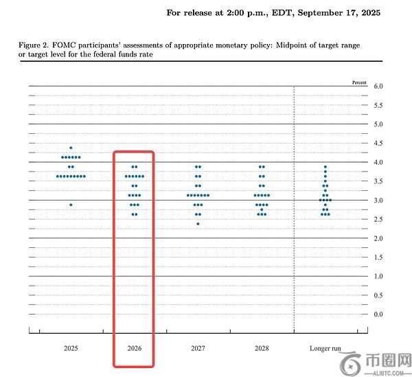 如果再看 2026 年,联储成员的分歧更大。