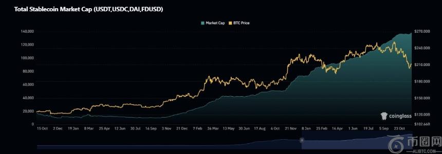即使价格有所回落,稳定币供应量仍在持续增长。