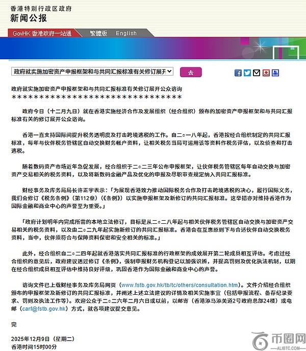 文章标题:香港政府发布加密资产申报框架(CARF)与CRS修订咨询报告:核心内容与行业影响解析