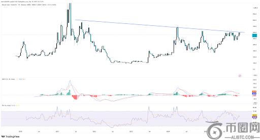BCH正在逼近自2021历史高点延伸至当前567美元区间的长期下降趋势阻力线。该线附近多次出现的回调表明供应压力持续存在。若周线能明确收于600-620美元上方,则可能打开通往700美元或更高价位的道路。