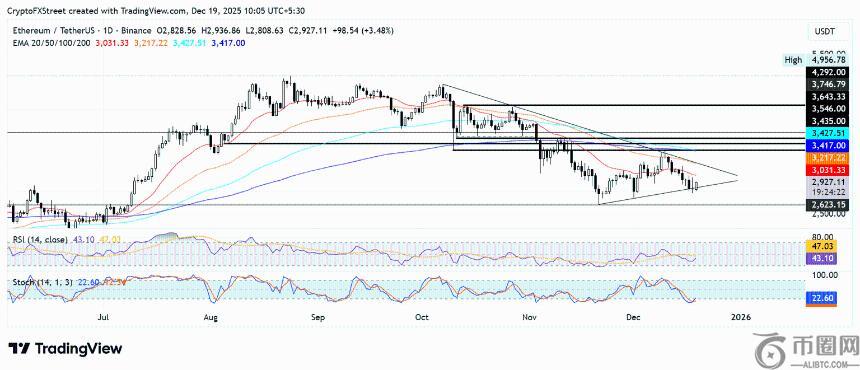 在三角形支撑位恢复后,该**山寨币必须突破其靠近 50 日均线的上边界,才能挑战 3470 美元的阻力位。然而,它必须先突破 20 日均线才能实现这一目标。