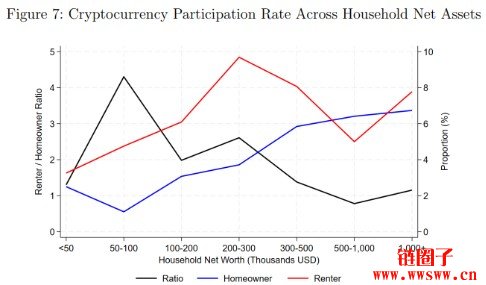不同家户净资产水准下,租屋者和住屋拥有者的加密货币参与率
