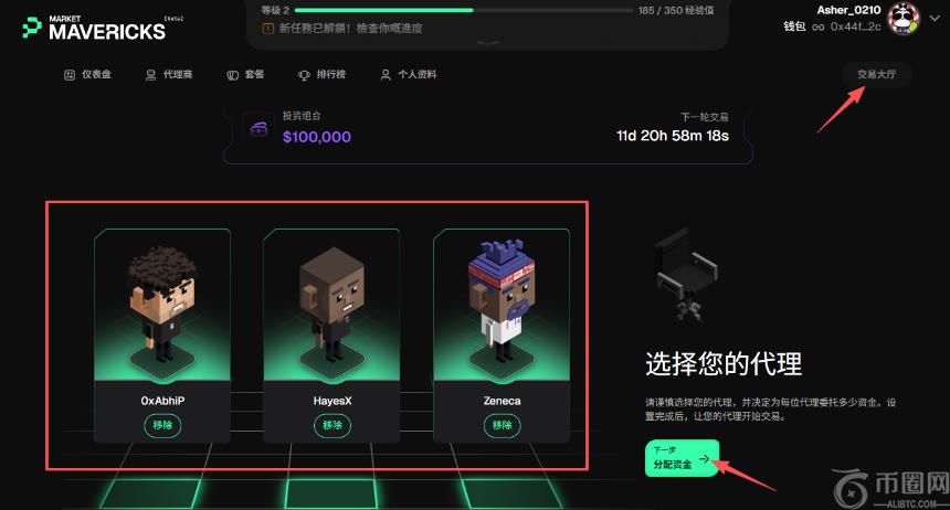 STEP 4. 进入“交易大厅”,选择三个交易代理并分配资金。