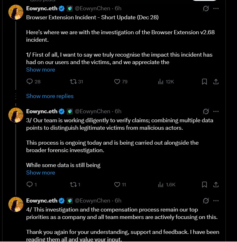 Trust Wallet正在联合外部安全团队进行深度取证分析。目前,谷歌已应要求升级相关请求,预计不久将公布Chrome应用商店的完整审计日志,以还原受感染更新的传播路径。