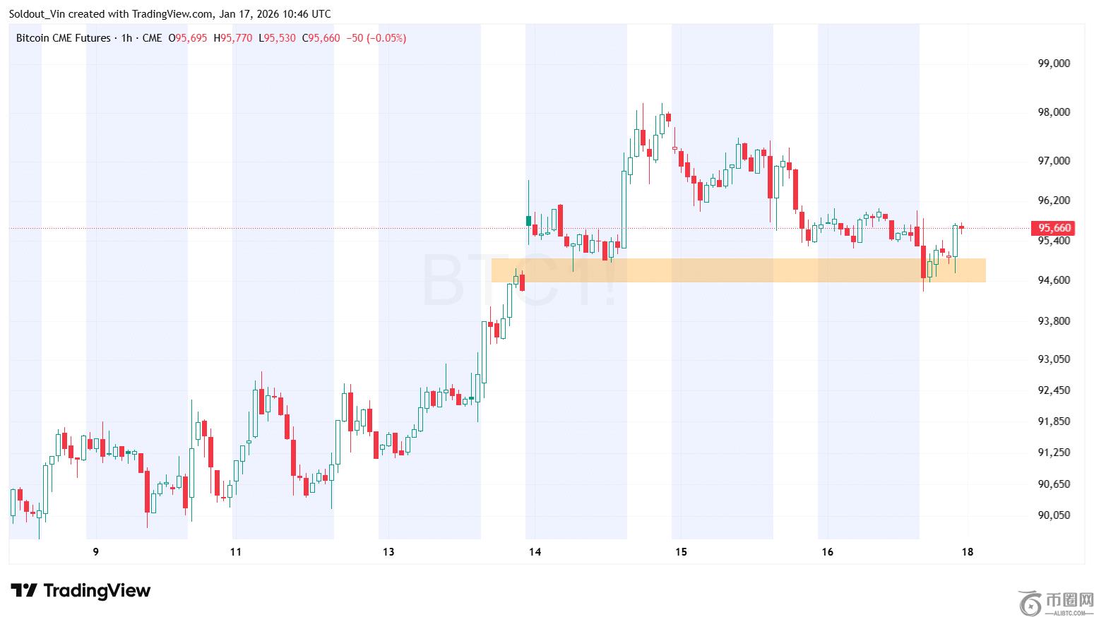 文章标题:比特币回补94,800美元CME缺口,剑指10万美元大关