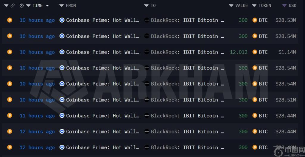 根据链上数据,贝莱德在过去10小时内从Coinbase提出了3,312枚比特币(约合3.14亿美元)与5,336枚以太坊(约合1,750万美元)。这使得其过去三日的总提款量达到12,658枚比特币(约合12.1亿美元)以及9,515枚以太坊(约合3,130万美元)。