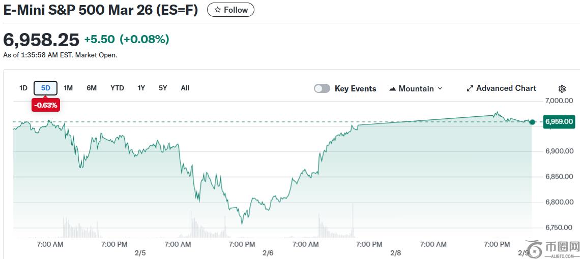 周一早盘,股指期货小幅上涨。标普500指数期货上涨0.1%,纳斯达克100指数期货上涨0.2%。投资者正准备迎接一个数据密集的一周,推迟的1月份就业报告定于周**布。