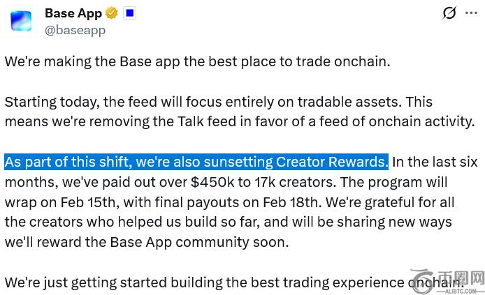 文章标题:Base App终止创作者奖励计划,专注加倍投入交易业务