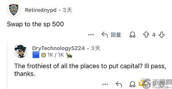 另一条更扎心,有人建议直接换成标普 500 指数,那才是所有泡沫的集大成者。评论回复到:标普 500 是最不适合买的资产,我不买谢谢。