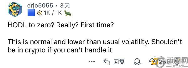 面对新鲜韭菜的恐慌,ID 为 erjo5055 的老兵留下经典语录:不是哥们,就这?这点波动都顶不住的话,你**还是别炒币了。