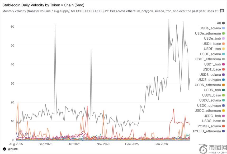 日流通速度(交易量/供应量)是被忽视的关键指标。它揭示稳定币是活跃使用的交换媒介,还是沉睡的资产。