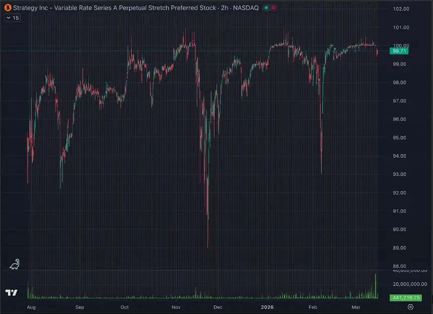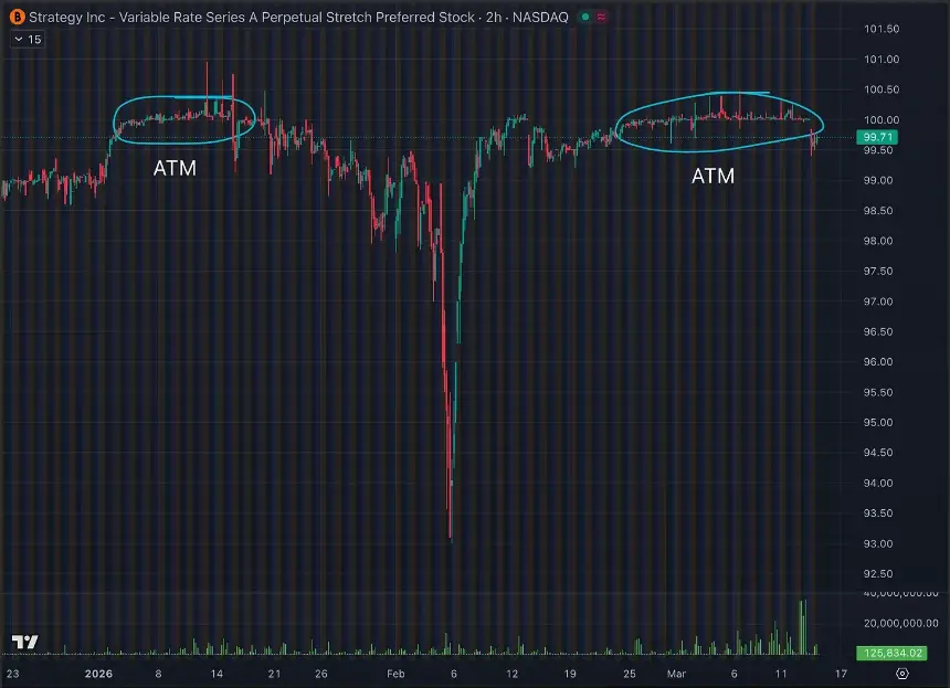 Odaily注:ATM 会在 STRC 价格达到 100 美元时启动运行。