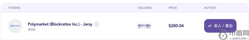 Jarsy 平台,股票盘前标价为 280 美元左右。