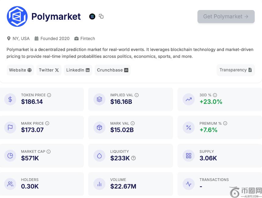 PreStocks 平台,股票**盘前价格为 186 美元左右(Odaily星球日报 注:近 30 日涨幅达 23%);