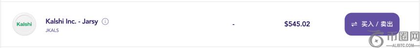 Jarsy 平台,股票盘前标价为 545 美元左右。(相较于我们 1 个月前在《Kalshi 交易量续破新高,盘前股价多少合理?》一文中的 504 美元已增长超 40 美元,涨幅达 8.1%)