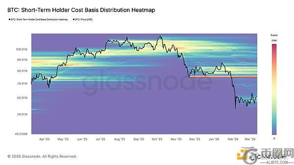 链上分析平台Glassnode指出:在最近的地缘政治冲击后,比特币仍表现出惊人韧性。“在6.2万至7.2万美元区间正形成一个积累集群,但强度较前期扩张前阶段温和。信心增强,但中期突破基础仍显薄弱。”