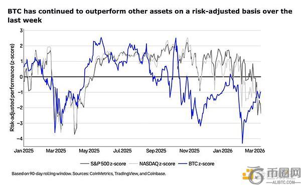 Coinbase在社交媒体发文称:近期的地缘政治冲击扰乱了传统金融市场,促使投资者重新评估加密资产的角色。这种情绪转换结合比特币相对于美股的优异表现,可能意味着市场正走出悲观高峰。