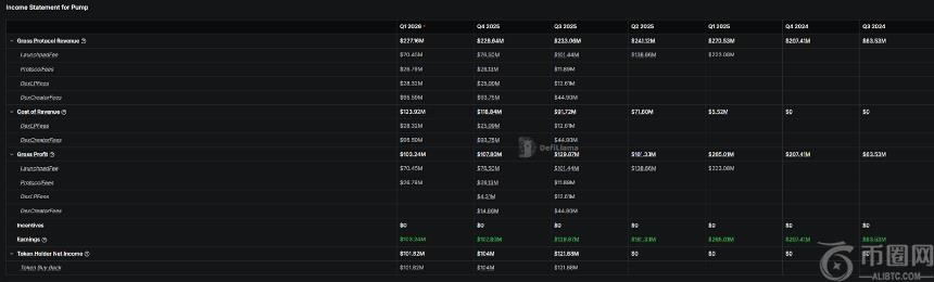 不过,尽管费用产生情况依旧稳健,但这并不意味着这些收入都能完整沉淀为协议利润。首先,一多半的费用都让渡给了创作者和LP;其次,在创作者收入之外,剩余收入几乎**用于**回购。2026年**季度,Pump.fun**生费用2.27亿美元,其中1.23亿美元分给了创作者和LP,剩余的1亿美元也几乎**用于**回购。
