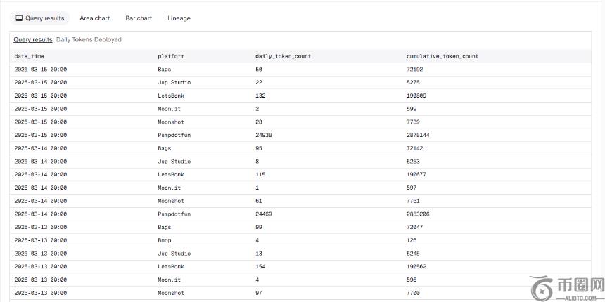 从市场格局来看,Pump.fun在Solana生态中的统治地位进一步加强。以3月15日的数据为例,Pump.fun**创建数量占比达99.1%,****比例为94.8%,单日交易量占比约为93%。当天,Pump.fun发币24938个,而LetsBonk仅132个,Bags为50个,Moonshot为28个,其他**发行平台的日数据量已**无法与Pump.fun竞争。
