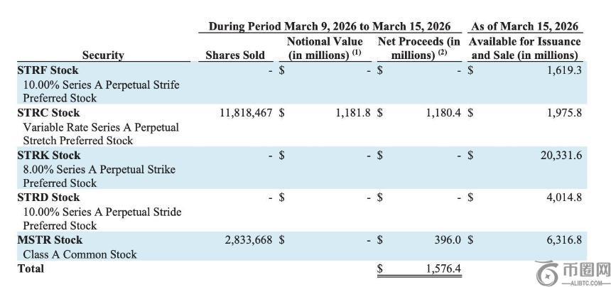 在这近16亿美元的购买力中,有高达11.8亿美元(占比约75%)直接来源于其可变利率优先股STRC在当周的销售净收益。截至3月中旬,STRC的规模已经超过50亿美元。