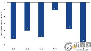 各持币时长分组的转移量均出现下降