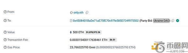 据Decrypt后续报道,OnlyFans也参与了此次捐赠。区块链追踪平台Etherscan显示,2022年2月27日,名称为only.eth的地址向乌克兰Ukraine DAO捐赠了500枚ETH,如今价值107.9万美元。