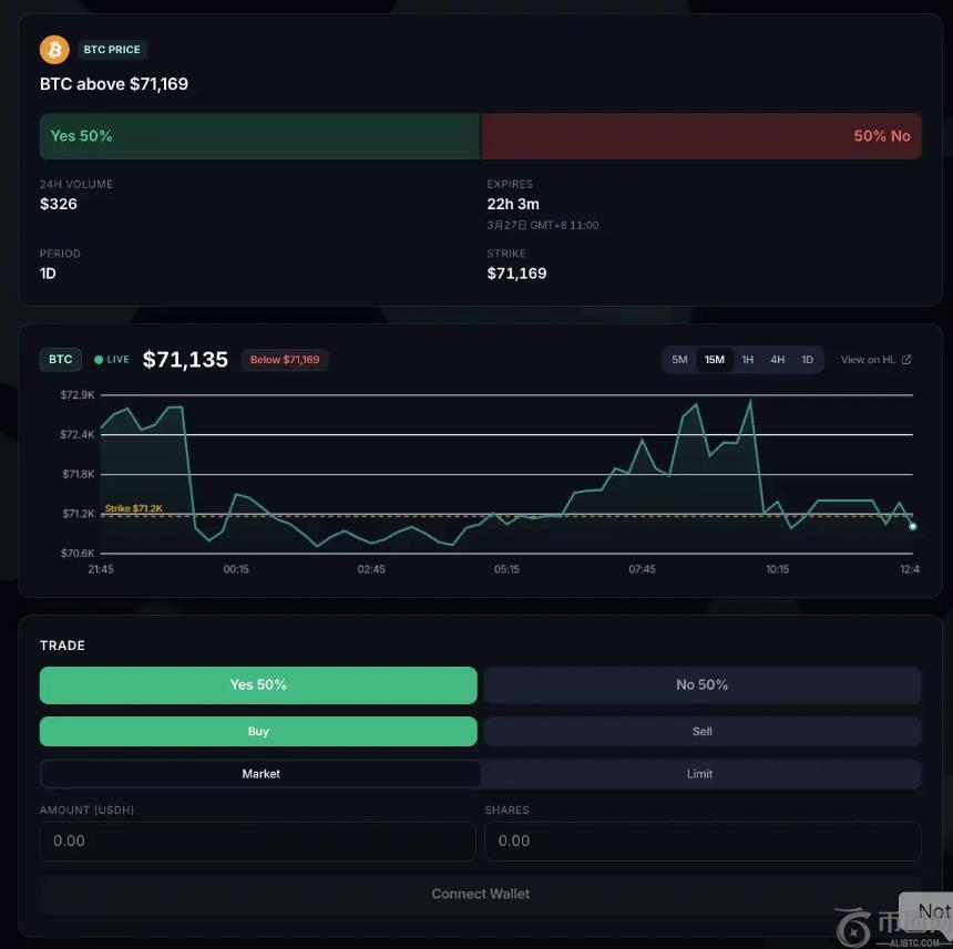 对于类似「BTC是否会在15分钟内触及某个价格」的市场,到期时将根据实时价格数据直接在 HyperCore 结算,无需依赖外部预言机,极大提升了结算透明度与安全性。
