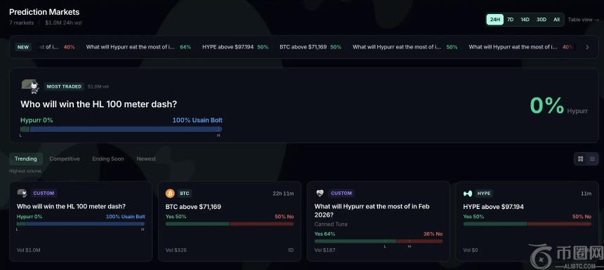 通过 HIP-4,抽象的「事件」能够被转化为真正可交易的资产。例如,假设有人开设「谁会赢得100米短跑」的市场,事件ID为9,结果0表示「Hypurr获胜」,则该结果会被映射为 HyperCore 上的「#90」**,并在订单簿上进行交易。交易者买卖它,就像交易一个现货标的。