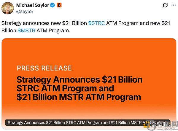 并且,似乎是为了可以继续增持BTC,Strategy于3月23日宣布推出新的 210 亿美元STRC股权发行计划,以及新的210亿美元MSTR股权发行计划。合计融资规模高达420亿美元。
