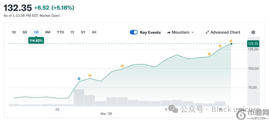 尽管其发行的USDC**始终锚定1美元,但自2月5日以来,Circle股票价格从49.90美元飙升至约123美元,短短五周涨幅超146%。与此同时,整个加密货币市场仍较10月峰值低44%。这种背离现象引发广泛关注:一个追求稳定的机构,为何能在动荡中实现股价跃升?