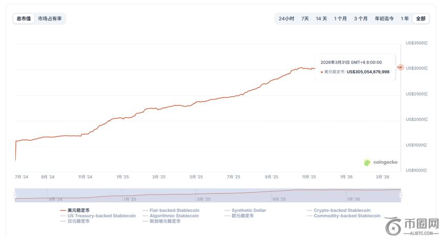 稳定币站在3000亿美元的历史高点关口,已有一段时间。数字亮眼,但拉近视角会发现,过去半年其增长正悄然显现平台期轮廓。这并非市场失去想象空间,而是支撑过去几年扩张的“人类交易驱动”逻辑,正在逼近边界。