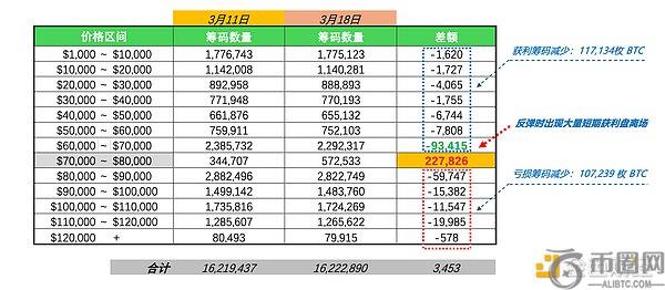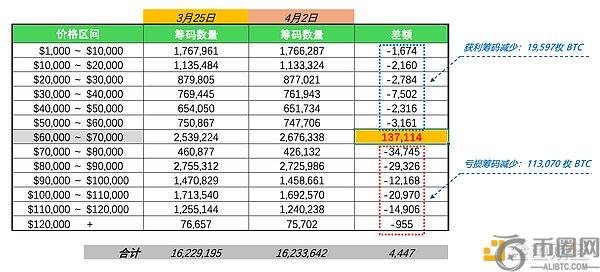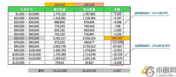 价格仍在60,000至70,000美元区间,获利筹码减少1.96万枚,亏损筹码减少11.3万枚,总换手量降至13.7万枚,较此前两周下降近50%。这表明市场流动性正急剧萎缩,交易意愿普遍**。
