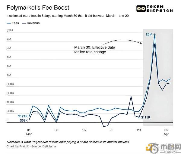 这一转变直观体现在 Polymarket 的日费率(手续费占总交易量的比例)上,该指标持续稳步攀升。