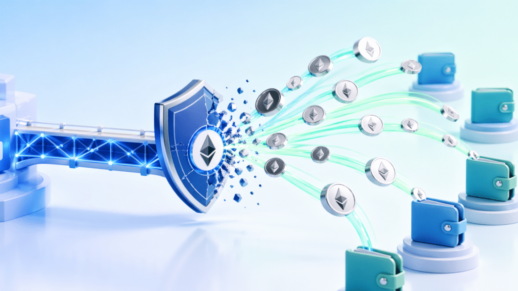 漏洞发生后,攻击者启动了有组织的转移。其中包括将25,000枚ETH和50,700枚ETH转入独立钱包,并伴随小额交易。这种模式表明其意图通过分散资金来**可追踪性,并为跨链兑换做准备。